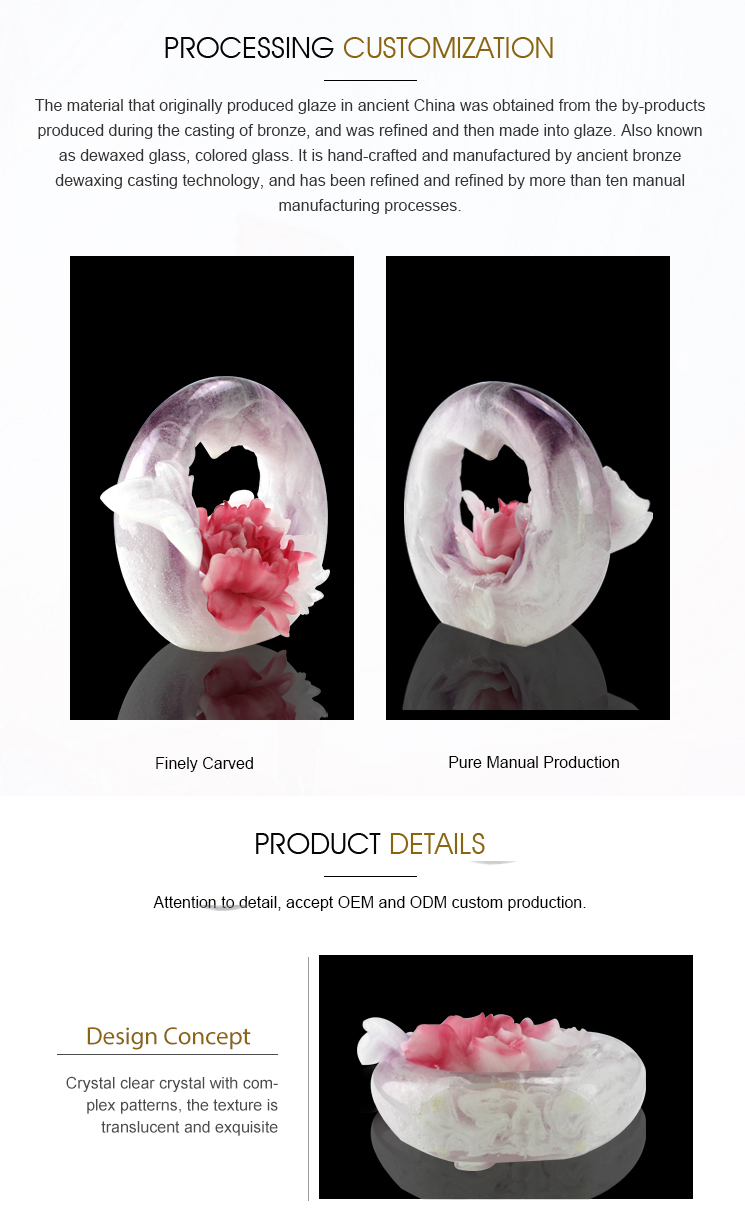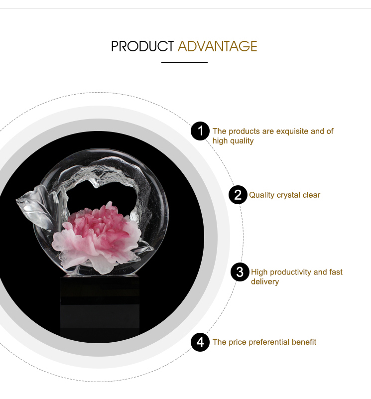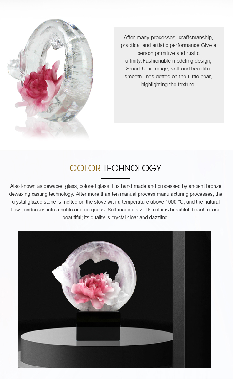 • Product Name: Crystal Liuli Art Crafts Red and White Peony Decorative Ornament with Crystal Base